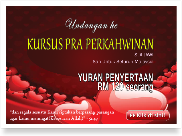 Kursus Pra Perkahwinan. Sijil JAWI. Sah di seluruh negara